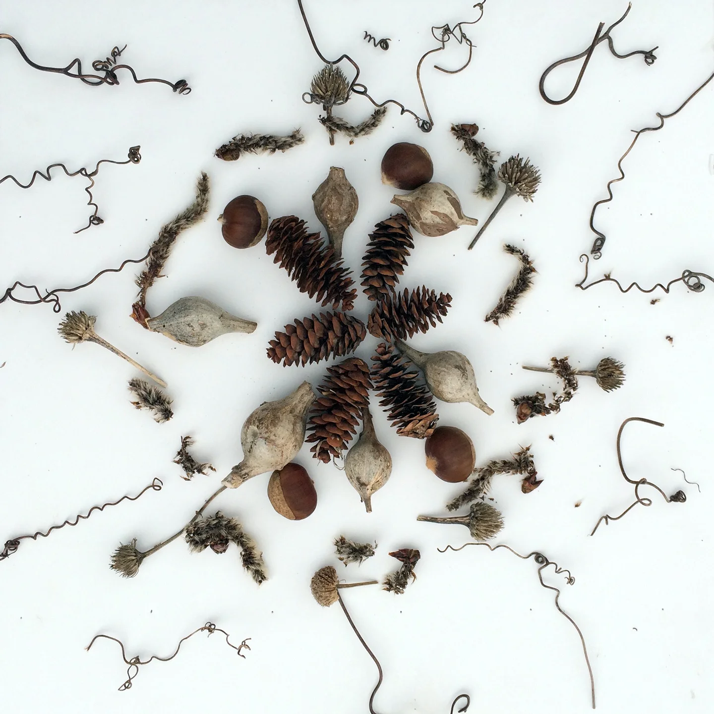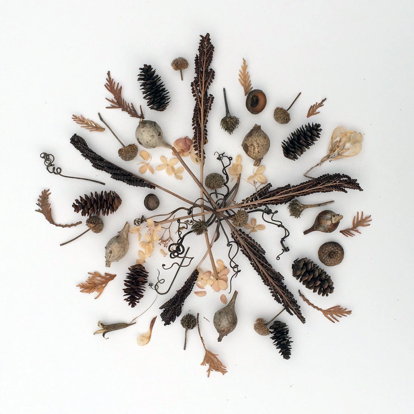 A wealth of dried seeds, pods, flowers and nuts, collected on morning walks in our fair town, were laid out for the community to pick from. Simple or elaborate, detailed & delicate or enormous & bold, using dainty acorn cups or huge cigar tree seed pods, nature mandalas were created.